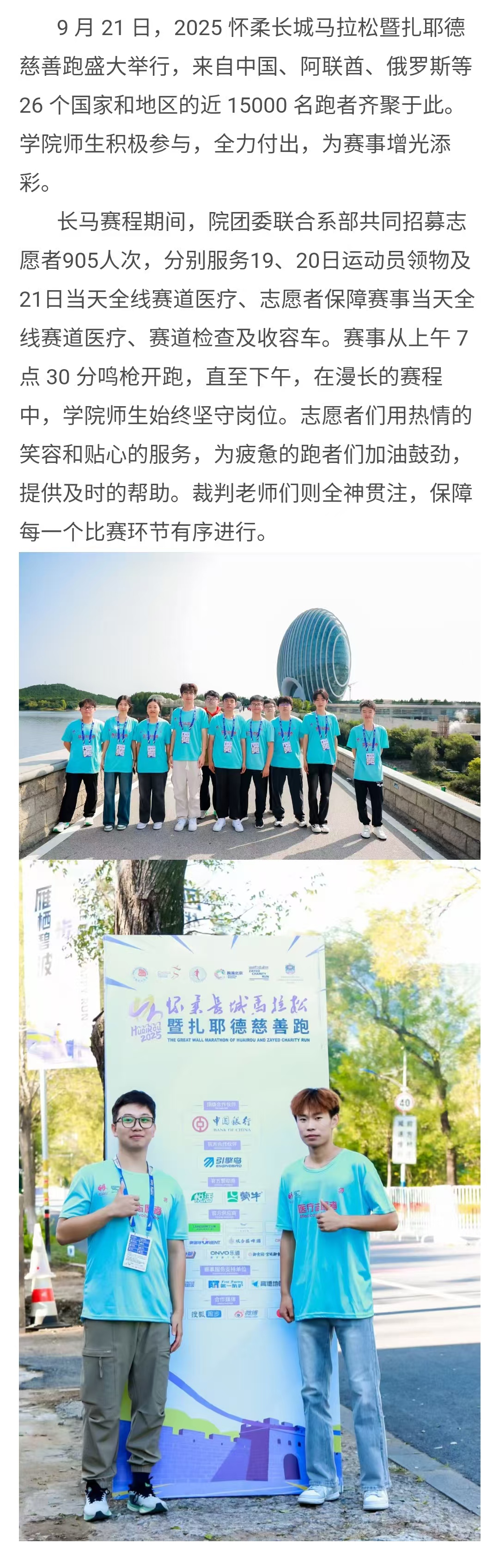 学院师生助力2025怀柔长城马拉松暨扎耶德慈善跑 圆满完赛